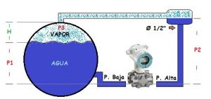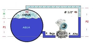 Recordemos que un transmisor diferencial mide las presiones del nivel inferior lado agua y del nivel superior lado vapor, estas se restan y tenemos la presión hidrostática generada por el líquido la cual es directamente proporcional al nivel.